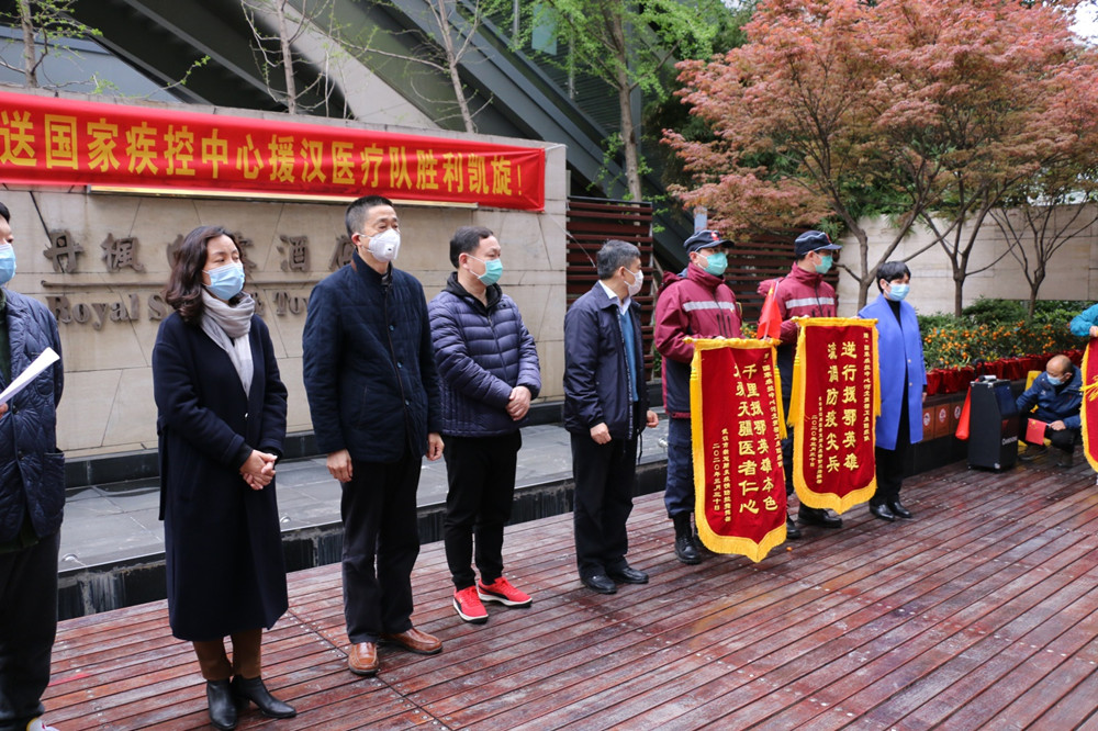 3月30日下午,湖北東信醫(yī)藥有限公司志愿者代表一行十三人應(yīng)邀參加了江岸區(qū)政府組織的河北省援漢醫(yī)療隊返程歡送儀式。江岸區(qū)有關(guān)部門的領(lǐng)導(dǎo)代表武漢人民感謝河北省第二批、第三批援漢醫(yī)療隊員的辛勤勞動和無私付出,并向他們贈送了錦旗和鮮花。