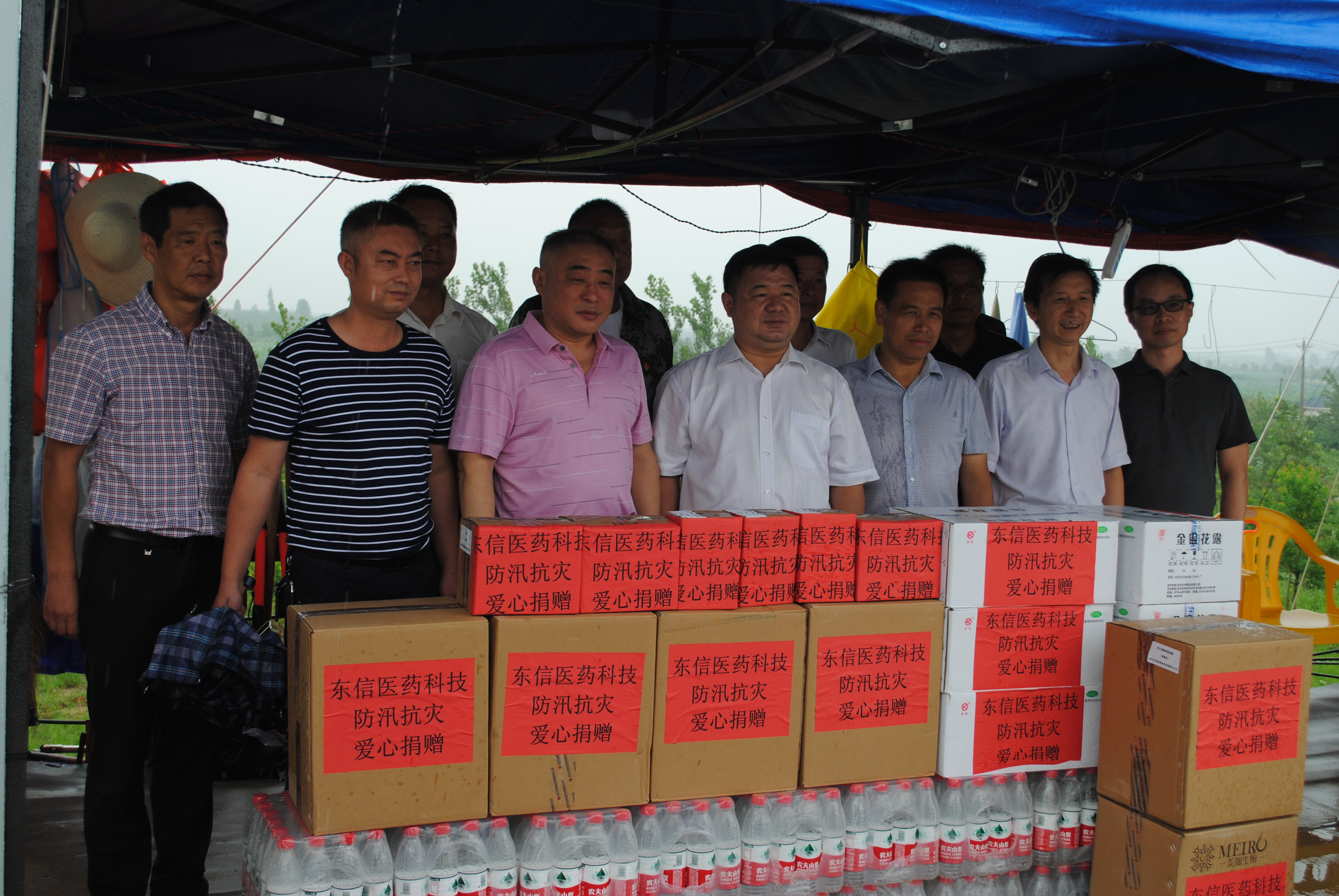 7月21日,蔡甸區(qū)政協(xié)胡朝暉主席,區(qū)委常委區(qū)委統(tǒng)戰(zhàn)部許永周書記、政協(xié)秘書長(zhǎng)鄒國(guó)棟、永安街黨工委書記計(jì)文華、蔡甸區(qū)經(jīng)濟(jì)開發(fā)區(qū)奓山街辦公室主任袁志凡、蔡甸區(qū)科技和經(jīng)濟(jì)信息化局周長(zhǎng)飛總工,蔡甸區(qū)奓山街黨工委副書記熊光輝等和武漢東信醫(yī)藥科技有限責(zé)任公司總經(jīng)理陳長(zhǎng)根、黨支部書記劉文富、質(zhì)量總監(jiān)黃鳳起、研發(fā)總監(jiān)鄭學(xué)文等一道,冒著大雨,驅(qū)車往返近百公里,向不分晝夜、堅(jiān)守在防汛一線的抗洪防汛人員送去了復(fù)方氨酚烷胺膠囊、金銀花露、蟲咬凝膠、植物驅(qū)蚊水、止癢酊等價(jià)值近22萬元的防暑降溫、驅(qū)蚊止癢的藥品和物資。