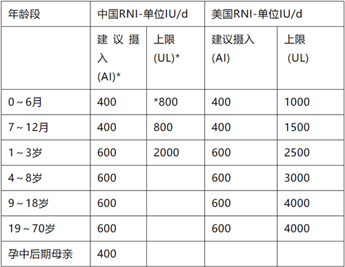 每日維生素D的推薦攝入量 (RNI)