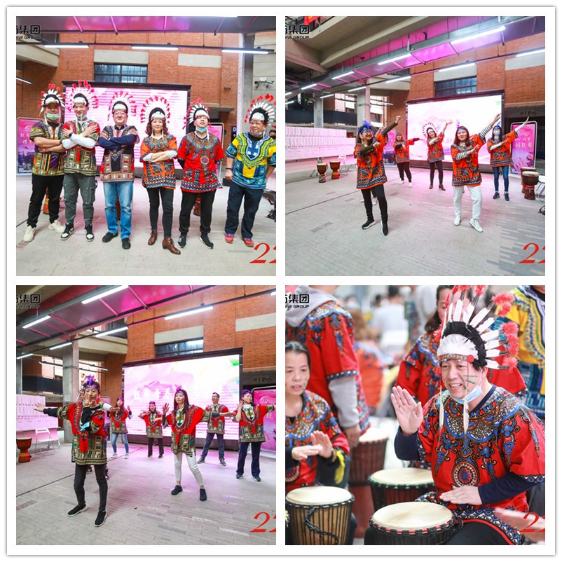 參加活動的所有成員被分為6個部落,每個部落穿上不同色彩的部落服裝,選取部落酋長、王妃,創(chuàng)作部落圖騰,為部落成員繪制面部彩繪。跟著教練一起練習(xí)手鼓,在這個值得紀(jì)念的日子里,大家載歌載舞,用鼓聲傳情,傳達(dá)出同一種聲音:東信,生日快樂!