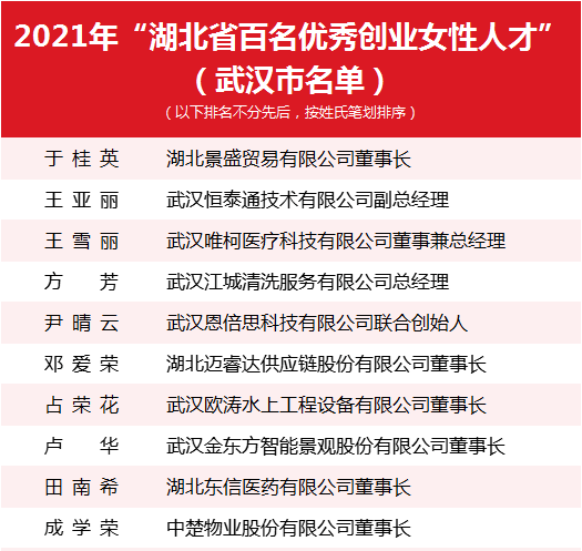 東信醫(yī)藥集團董事長田南希入選“湖北省百名優(yōu)秀創(chuàng)業(yè)女性人才” 榮譽榜