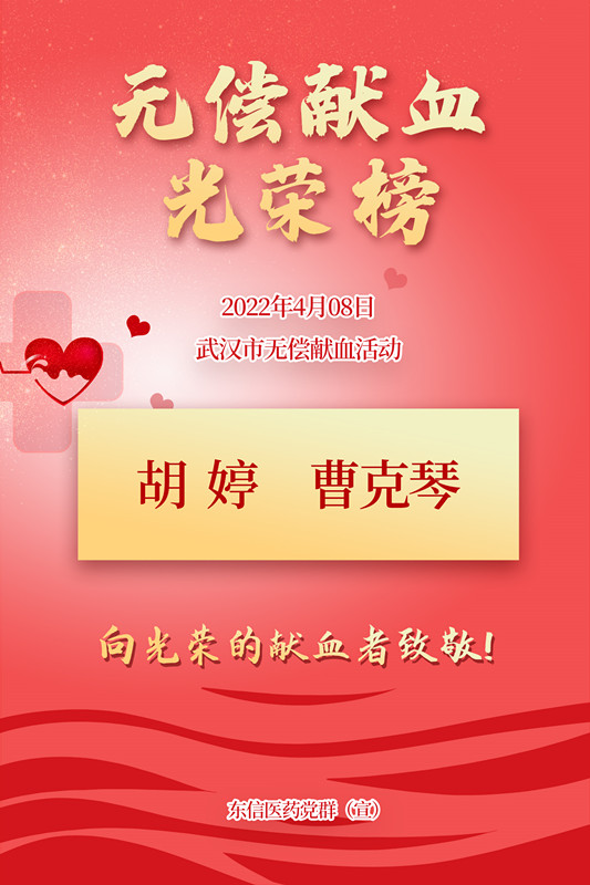 最美人間四月天,在這個(gè)春暖花開的季節(jié),湖北東信醫(yī)藥有限公司(下稱:東信醫(yī)藥)的青年志愿者加入了四唯街無(wú)償獻(xiàn)血的隊(duì)伍。4月11日上午,東信醫(yī)藥的志愿者們來(lái)到四唯街道組織的獻(xiàn)血大巴,在工作人員有序組織下填表、化驗(yàn)、抽血,他們以實(shí)際行動(dòng)綻放青春“熱血”風(fēng)采,為武漢的血液供應(yīng)注入了愛心力量。