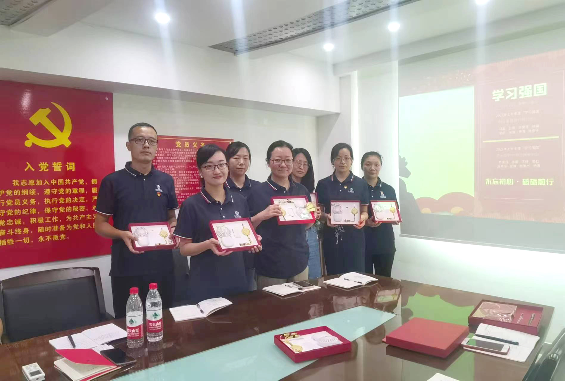 7月28日下午,湖北東信醫(yī)藥有限公司黨支部召開了七月份支部主題黨日活動(dòng)。會(huì)上全體黨員深入學(xué)習(xí)貫徹習(xí)近平總書記考察湖北重要講話精神和省第十二次黨代會(huì)精神。會(huì)上東信醫(yī)藥黨支部對(duì)支部黨員“學(xué)習(xí)強(qiáng)國(guó)”平臺(tái)2022年上半年度積分增值前8位黨員、積分總分值前8位黨員進(jìn)行了表彰及頒獎(jiǎng)。