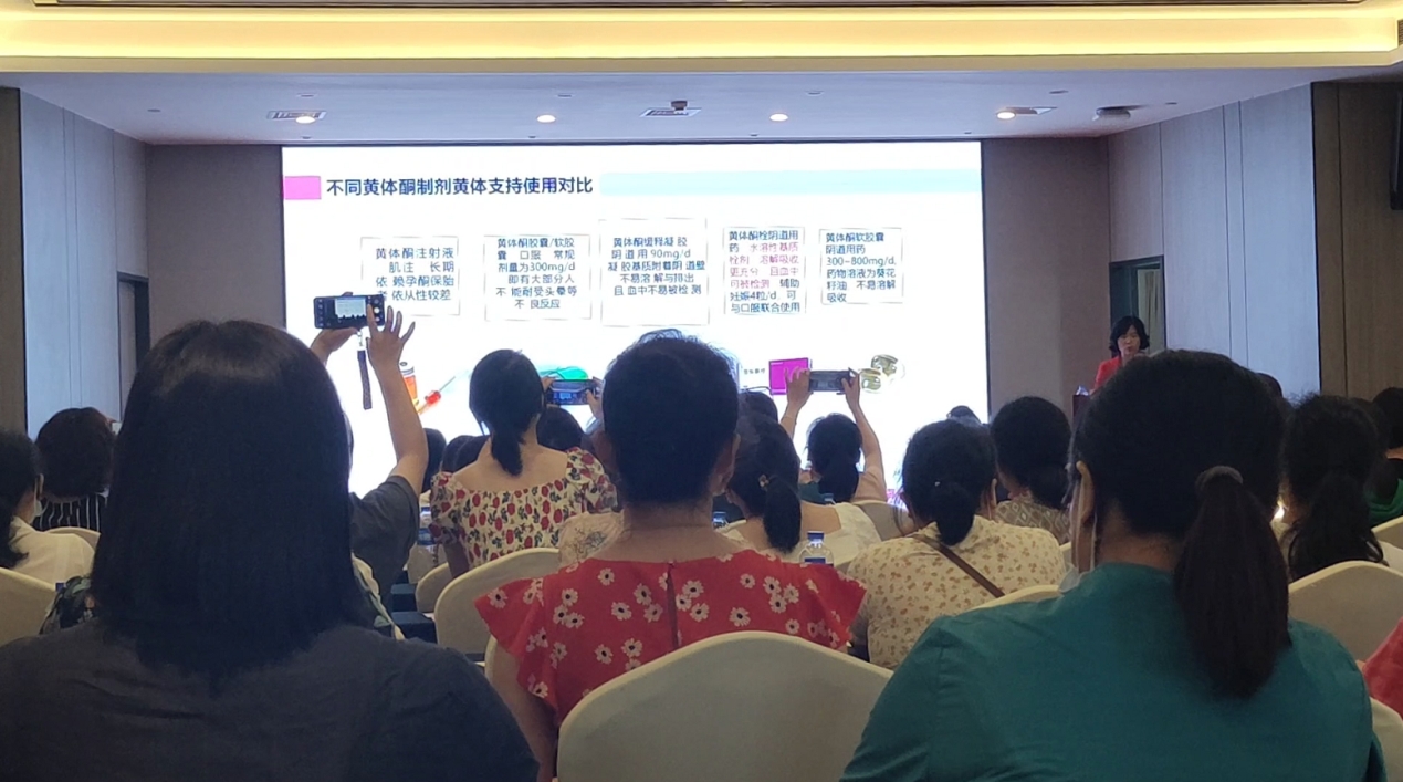 隨后,羅主任對(duì)比了不同黃體酮制劑之間的優(yōu)劣勢(shì),并提到:黃體酮栓采用水溶性基質(zhì),陰道用藥溶解吸收更充分,無(wú)殘留;黃體酮栓陰道用藥,血中可被檢測(cè),并具有子宮首過(guò)效應(yīng)的優(yōu)勢(shì),靶器官內(nèi)的藥物濃度遠(yuǎn)高于血液;此外,黃體酮栓生物利用度更高,降低了全身不良反應(yīng);特有的“第四通道”給藥路徑,為部分陰道給藥不便的患者提供了便利,在未來(lái)也是一種頗具前景的給藥方式。最后,羅主任介紹了黃體酮栓與黃體酮注射液、凝膠劑、口服制劑的劑量等效關(guān)系:4粒/100mg黃體酮栓的劑量,等效于60mg注射液或90mg緩釋凝膠;1粒/25mg黃體酮栓提升黃體酮值的效果大于口服100mg/bid口服制劑。羅主任對(duì)于《指南》的解讀深入淺出,為孕激素與黃體支持相關(guān)的臨床診療工作給出了一系列實(shí)用的技術(shù)指導(dǎo),贏得了與會(huì)嘉賓和現(xiàn)場(chǎng)醫(yī)生的一致認(rèn)可。