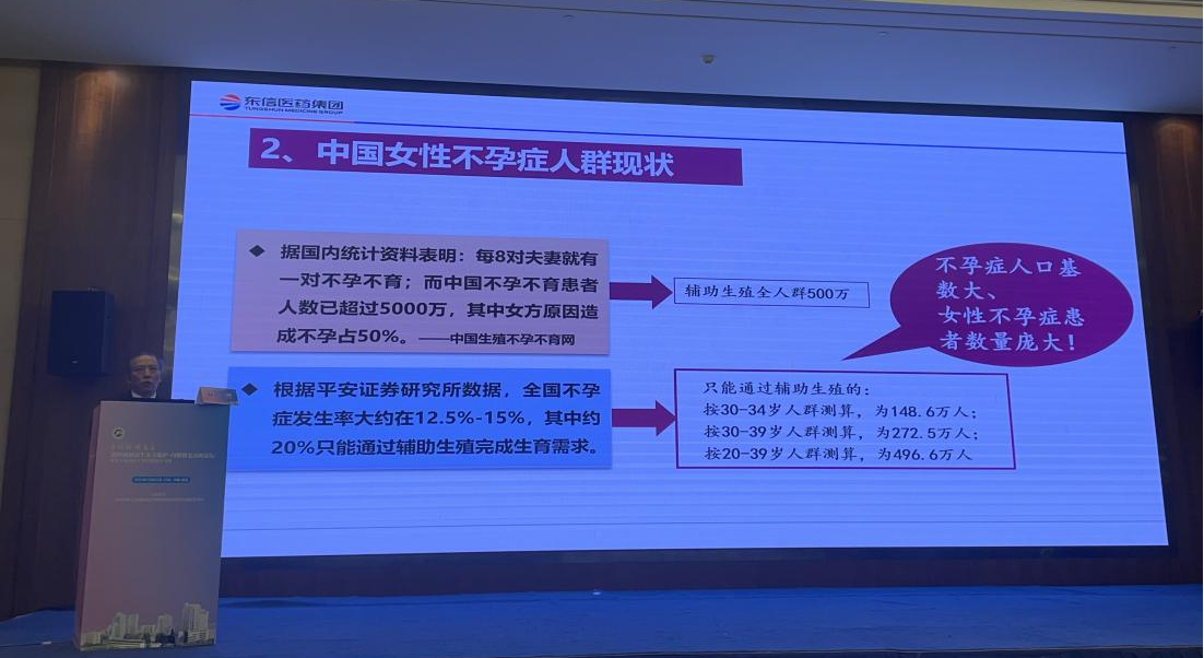 靳鐳教授以《輔助生殖中黃體支持的臨床藥物選擇》為題,詳細(xì)分享了比維彤®黃體酮栓在輔助生殖領(lǐng)域的應(yīng)用及優(yōu)勢(shì)。靳教授首先介紹了我國(guó)不孕癥的現(xiàn)狀:2019年底,我國(guó)21歲-49歲適齡生育的女性人數(shù)為3.08億人,其中30-34歲女性占比19.3%,35-39歲女性占比16.1%,20-39歲女性占比為64.5%。其中,每8對(duì)夫妻就有一對(duì)不孕不育;而中國(guó)不孕不育患者人數(shù)已超過(guò)5000萬(wàn),其中女方原因造成不孕占50%。我國(guó)不孕癥人口基數(shù)大,女性不孕癥患者數(shù)量尤其龐大。