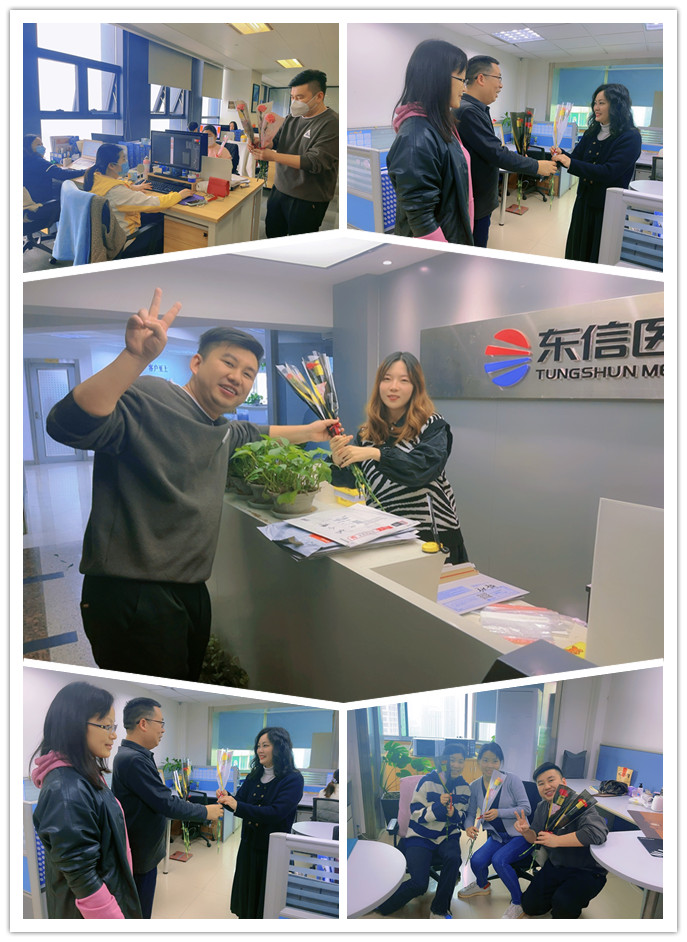 8日上午,東信醫(yī)藥的女神們收到了公司男神們送來的鮮花和節(jié)日祝福,貼心的祝福,讓他們感受到了濃濃的節(jié)日氛圍,收到鮮花的女神們臉上都洋溢著掩飾不住的喜悅之情。
