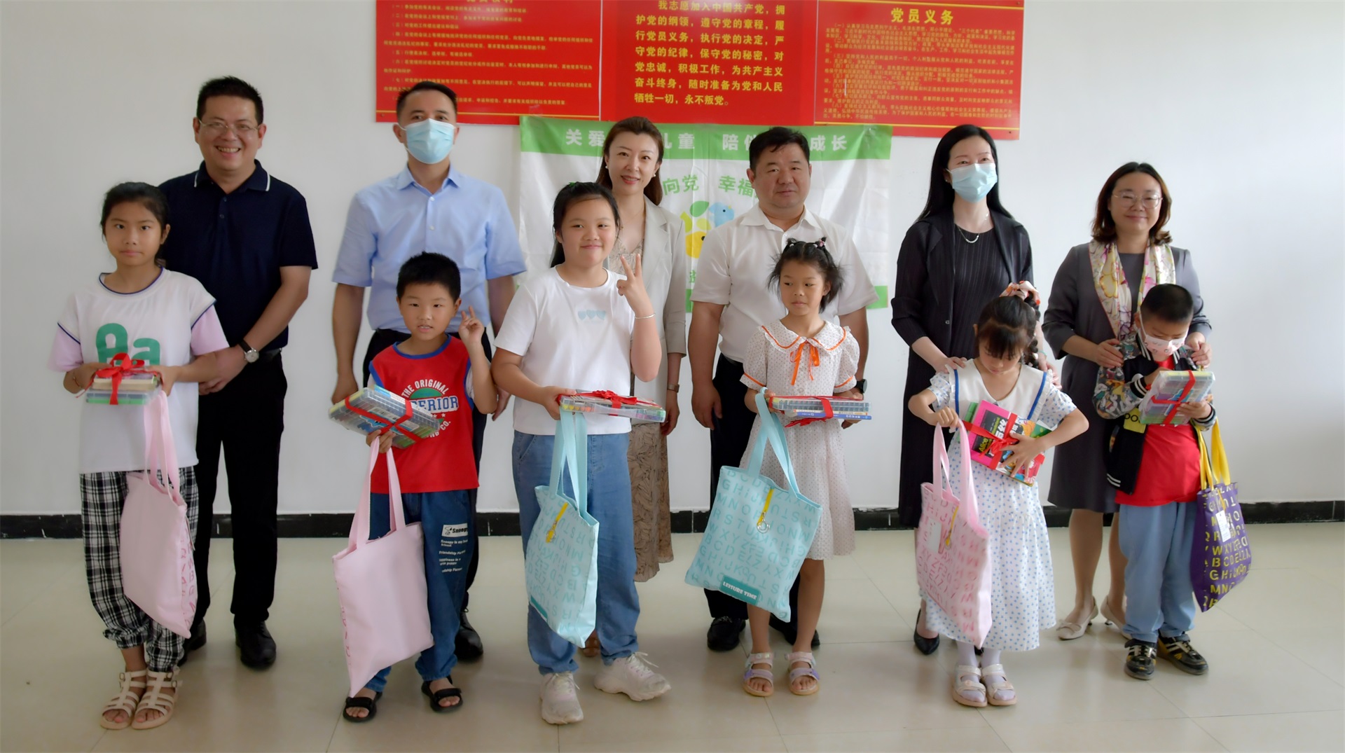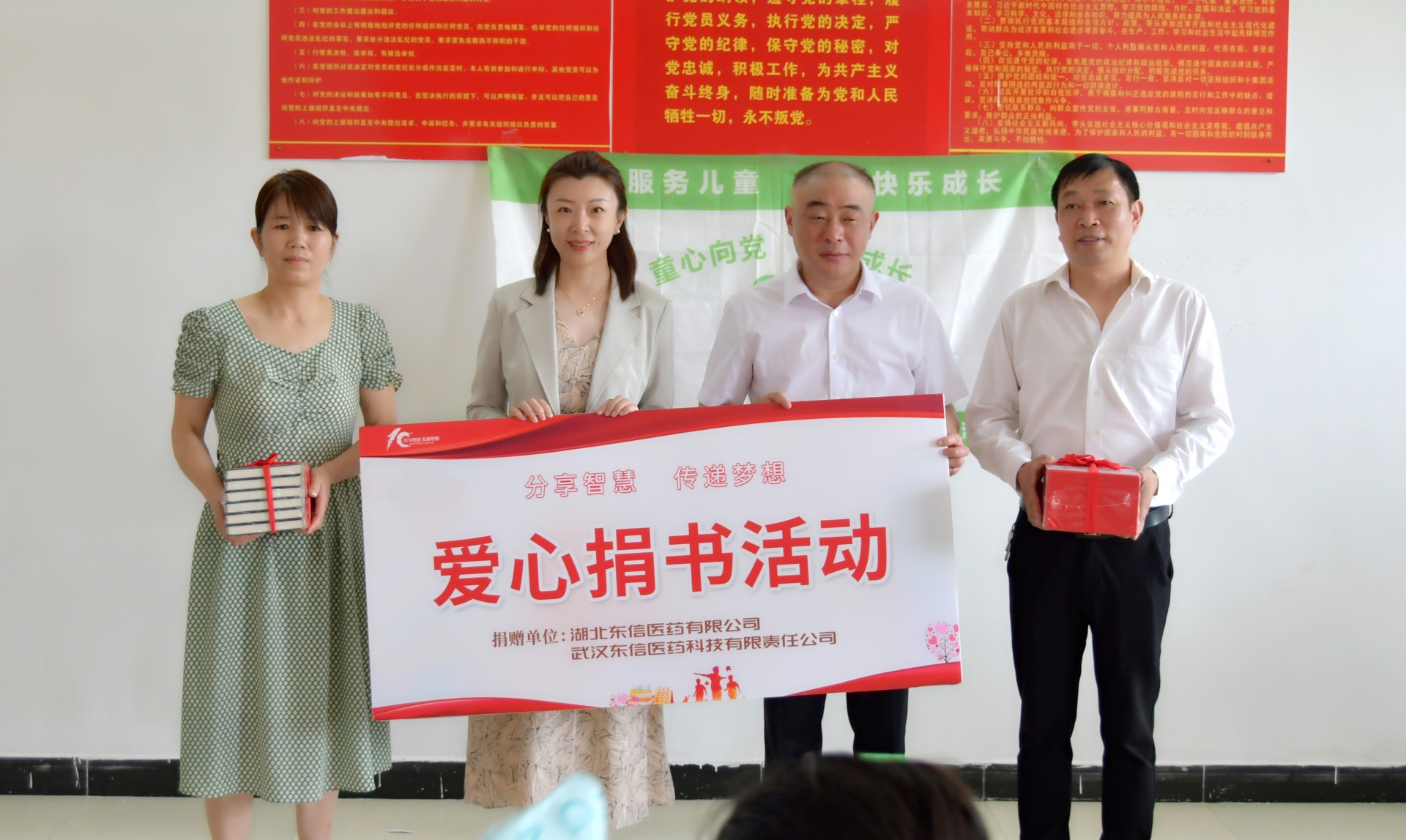 2023年6月1日,在武漢市婦聯(lián)黨組成員、副主席雷萍,機(jī)關(guān)黨委專職副書記郝志紅,武漢市婦女兒童活動(dòng)中心副主任喬榮森,蔡甸區(qū)人大常委會(huì)主任胡朝輝,區(qū)委常委、組織部長王呈華,區(qū)政府副區(qū)長郭彩霞,區(qū)婦聯(lián)副主席姚莉榮等領(lǐng)導(dǎo)的帶領(lǐng)下,東信醫(yī)藥集團(tuán)董事長田南希及工作人員一行來到蔡甸區(qū)張灣街上游村黨群活動(dòng)中心,為上游村留守兒童及農(nóng)家書屋送去兒童節(jié)禮物。