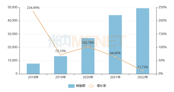 該產(chǎn)品2016年在中國公立醫(yī)療機構(gòu)終端的銷售額僅在100萬元水平,2018年達到了7000萬元以上,進入國家基藥目錄后在2022年飆升至接近5億元,成為了中國公立醫(yī)療機構(gòu)終端胃藥(胃炎、潰瘍)TOP3產(chǎn)品。