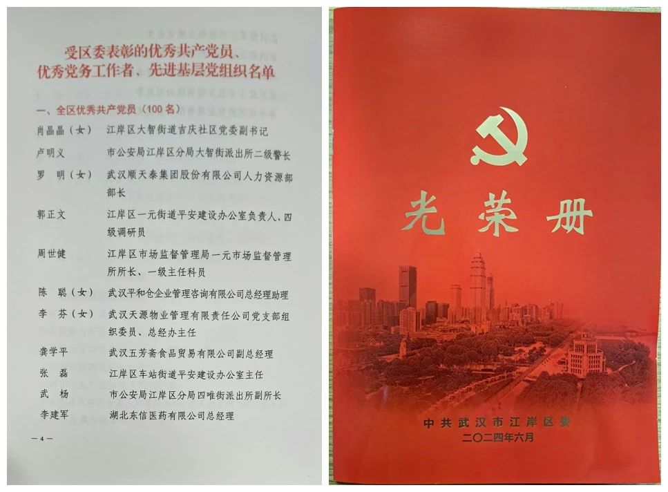 6月28日,武漢市江岸區(qū)召開(kāi)2024年“兩優(yōu)一先”表彰大會(huì),湖北東信醫(yī)藥有限公司總經(jīng)理李建軍同志被中共武漢市江岸區(qū)委評(píng)為“全區(qū)優(yōu)秀共產(chǎn)黨員”。這一榮譽(yù)不僅是對(duì)李建軍同志個(gè)人品德和卓越貢獻(xiàn)的肯定,也是對(duì)東信醫(yī)藥黨支部黨建工作的高度認(rèn)可。