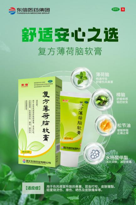 復(fù)方薄荷腦軟膏由湖北東信藥業(yè)生產(chǎn),其成分不含激素,主要成分為薄荷腦、水楊酸甲酯、樟腦、松節(jié)油,輔料為桉油、白凡士林。可用于由傷風(fēng)感冒引起的鼻塞,昆蟲(chóng)叮咬,皮膚皸裂,輕度燒燙傷,擦傷,曬傷及皮膚瘙癢等。薄荷腦外用具有清涼的感覺(jué),可以消炎,止痛,止癢,促進(jìn)血液循環(huán),減輕浮腫。水楊酸甲酯可消炎鎮(zhèn)痛;樟腦可消腫止痛;松節(jié)油穿透力強(qiáng),可加快血液循環(huán),緩解腫脹;輔料桉油也具有驅(qū)蟲(chóng)作用。因此在皮膚沒(méi)有破潰的時(shí)候,復(fù)方薄荷腦軟膏可用于輕度的燒傷燙傷曬傷,有助于消除腫脹,緩解疼痛。