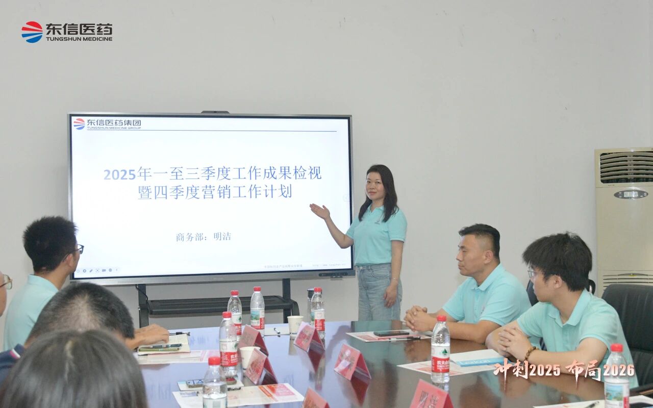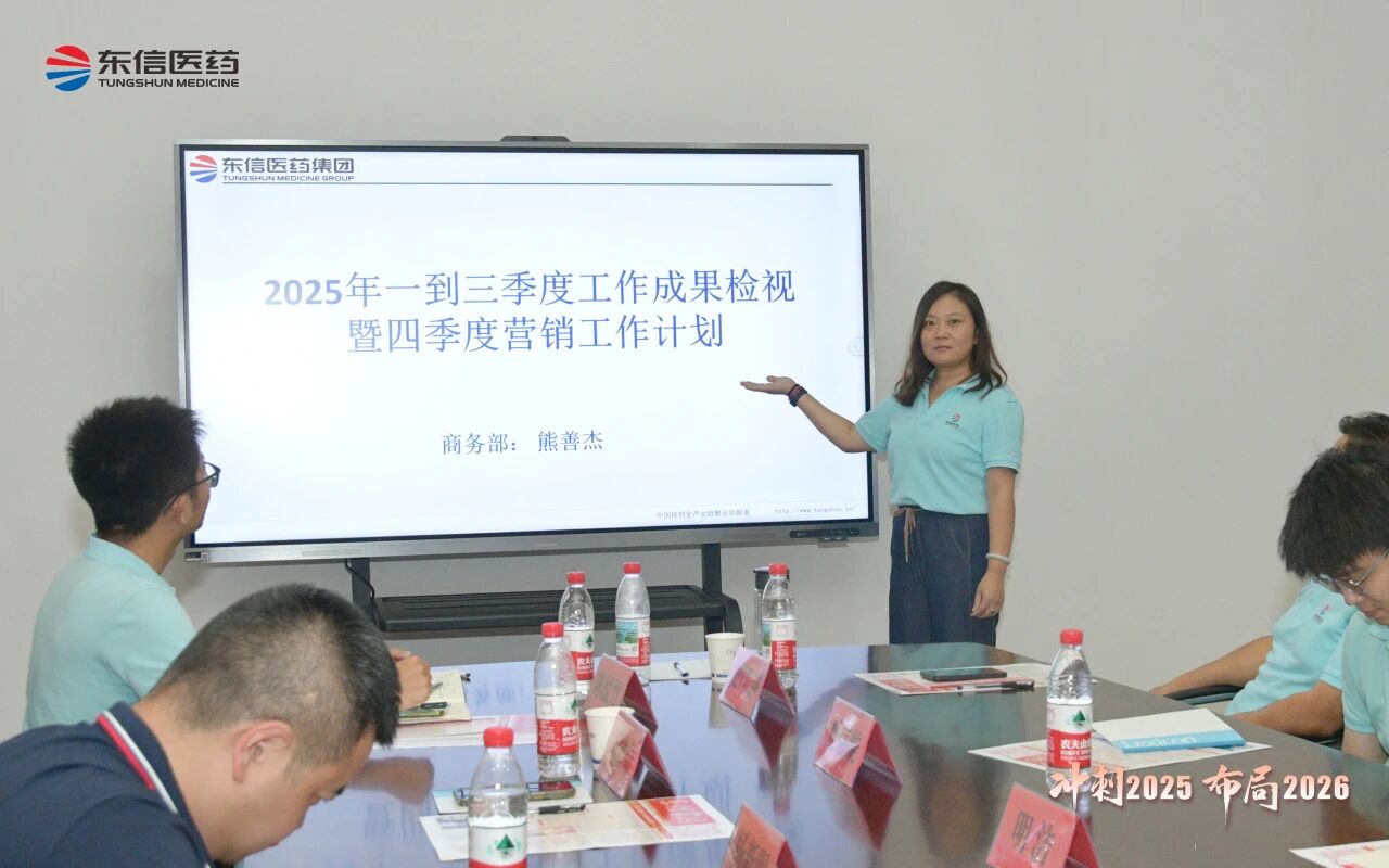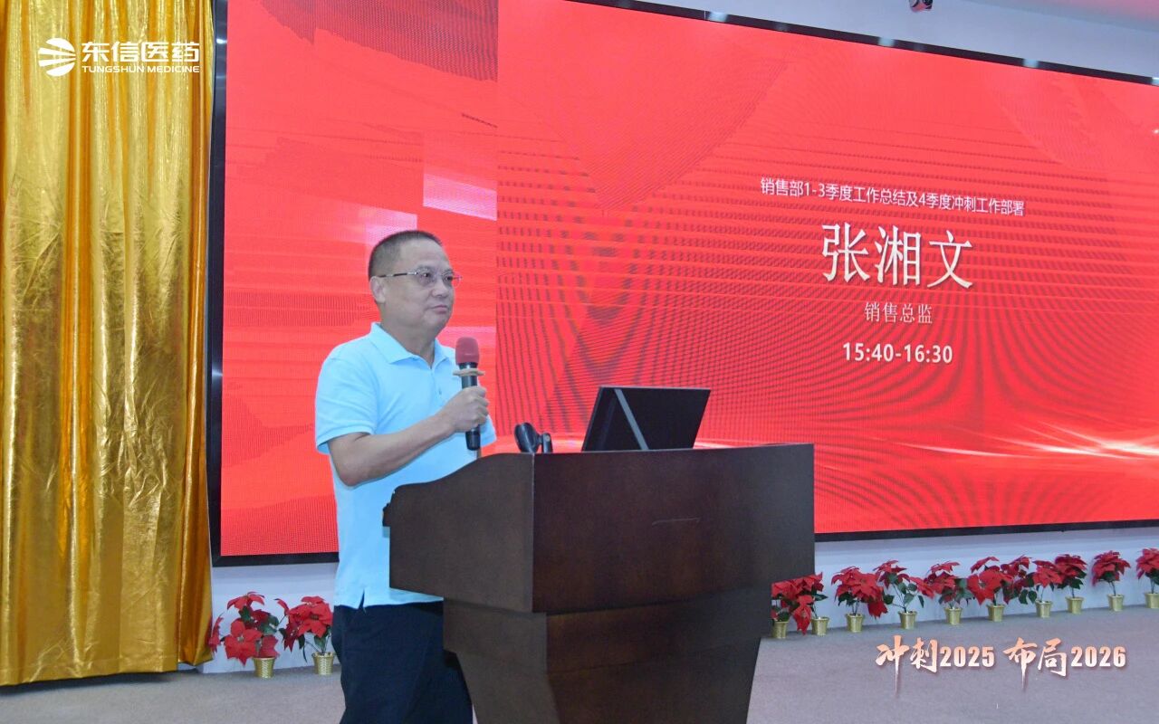 銷售總監(jiān)張湘文全面總結(jié)銷售部前三季度的業(yè)績達(dá)成情況,并針對多項(xiàng)重點(diǎn)工作提出具體要求:一是確保完成四季度任務(wù)目標(biāo);二是穩(wěn)步推進(jìn)五大工程落地;三是有序開展秋季PK活動;四是推動區(qū)域重點(diǎn)產(chǎn)品實(shí)現(xiàn)深度突破;五是加大OTC產(chǎn)品推廣力度;六是落實(shí)省際聯(lián)盟集采相關(guān)工作;七是科學(xué)制定2026年銷售計(jì)劃。