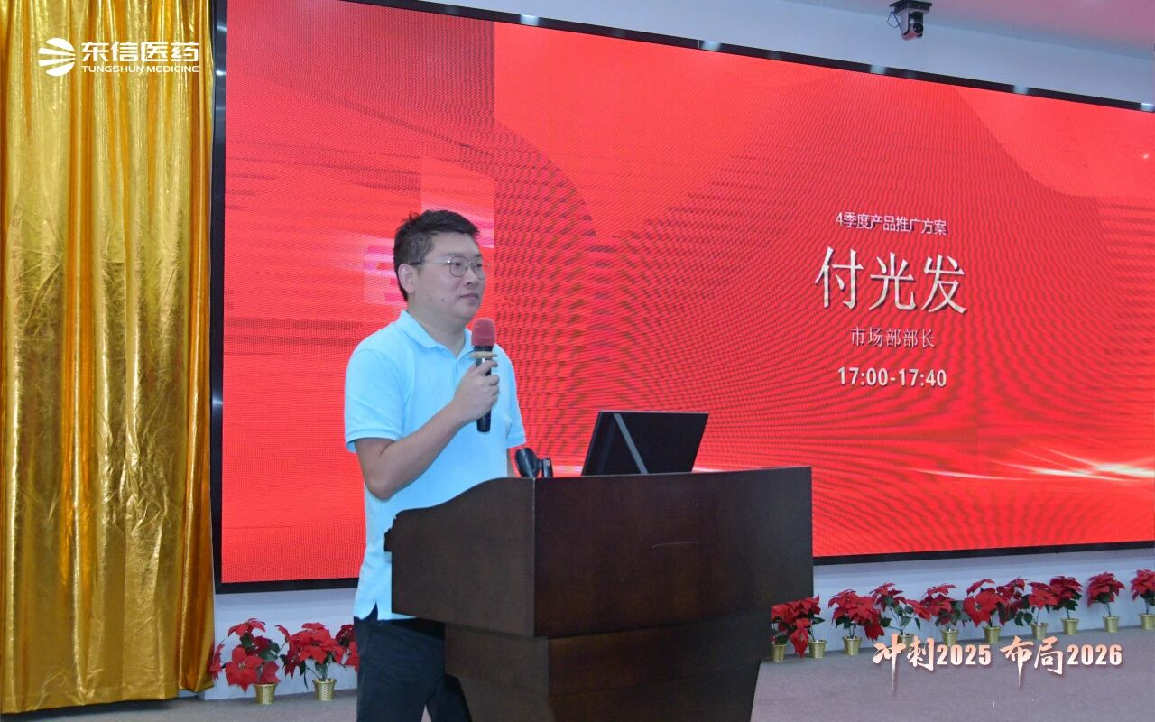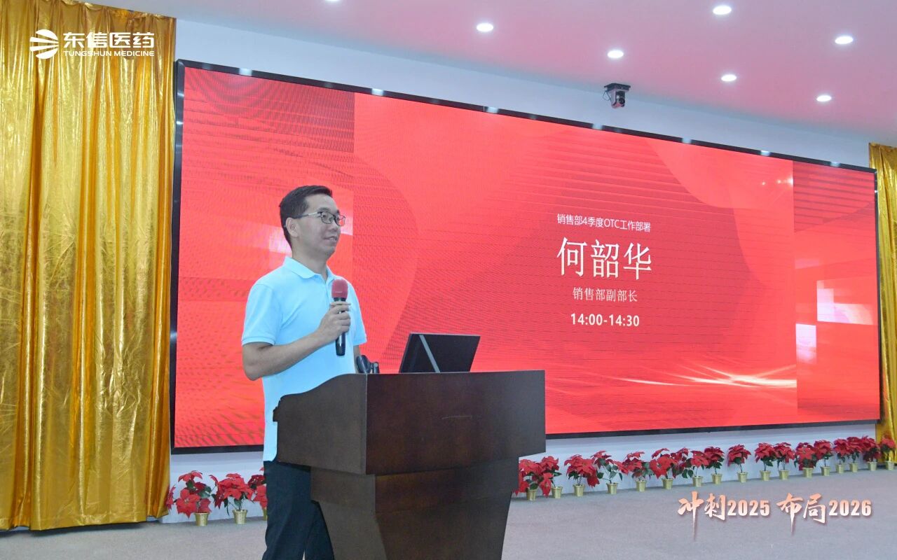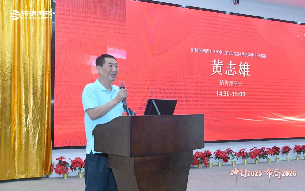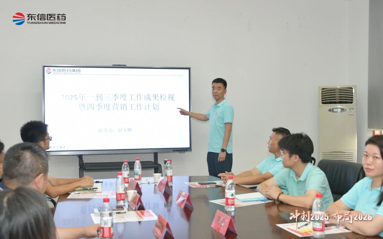 銷售總監(jiān)張湘文全面總結(jié)銷售部前三季度的業(yè)績達(dá)成情況,并針對多項(xiàng)重點(diǎn)工作提出具體要求:一是確保完成四季度任務(wù)目標(biāo);二是穩(wěn)步推進(jìn)五大工程落地;三是有序開展秋季PK活動;四是推動區(qū)域重點(diǎn)產(chǎn)品實(shí)現(xiàn)深度突破;五是加大OTC產(chǎn)品推廣力度;六是落實(shí)省際聯(lián)盟集采相關(guān)工作;七是科學(xué)制定2026年銷售計(jì)劃。