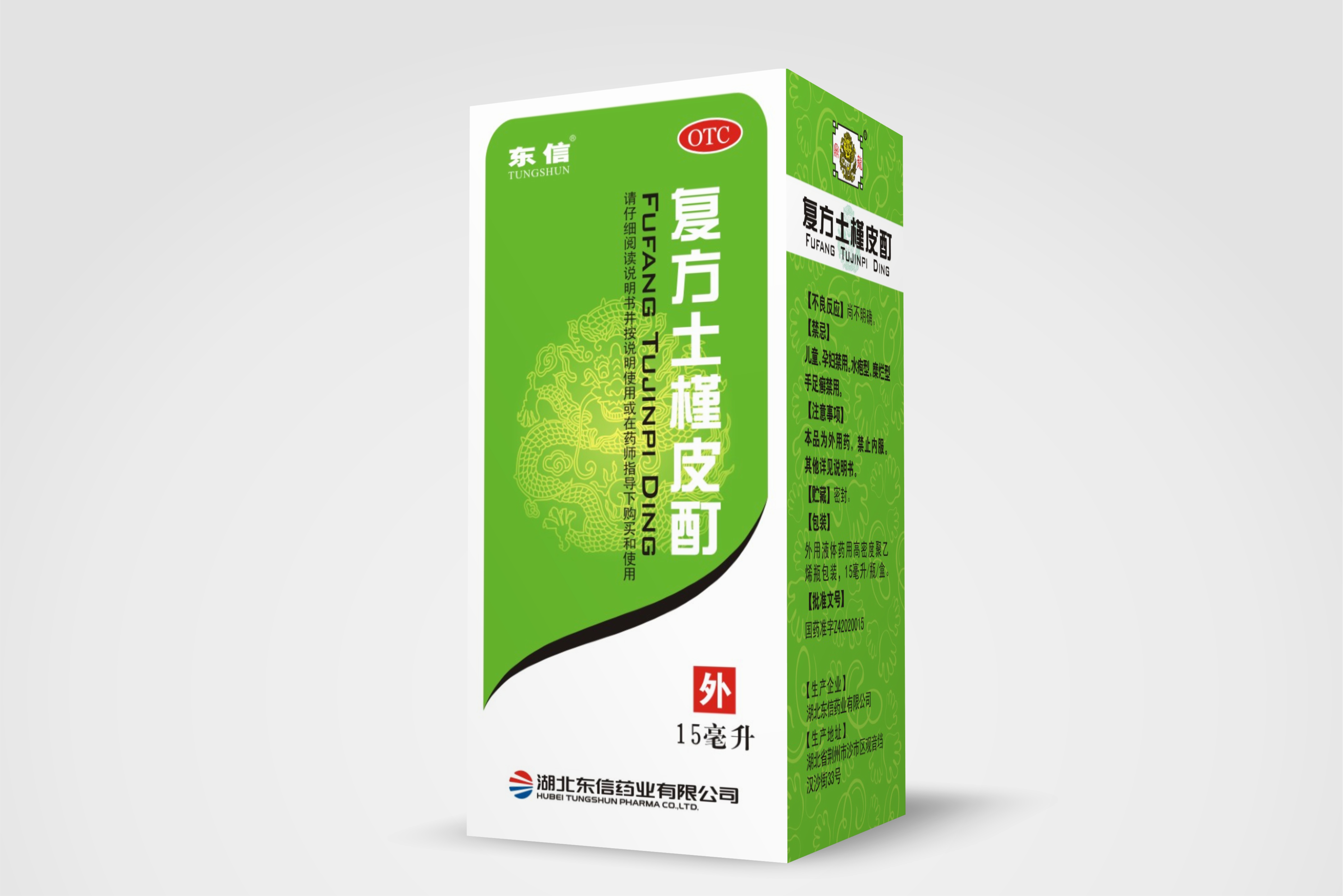 【包裝】外用液體藥用高密度聚乙烯瓶包裝,每瓶裝15毫升/瓶/盒。