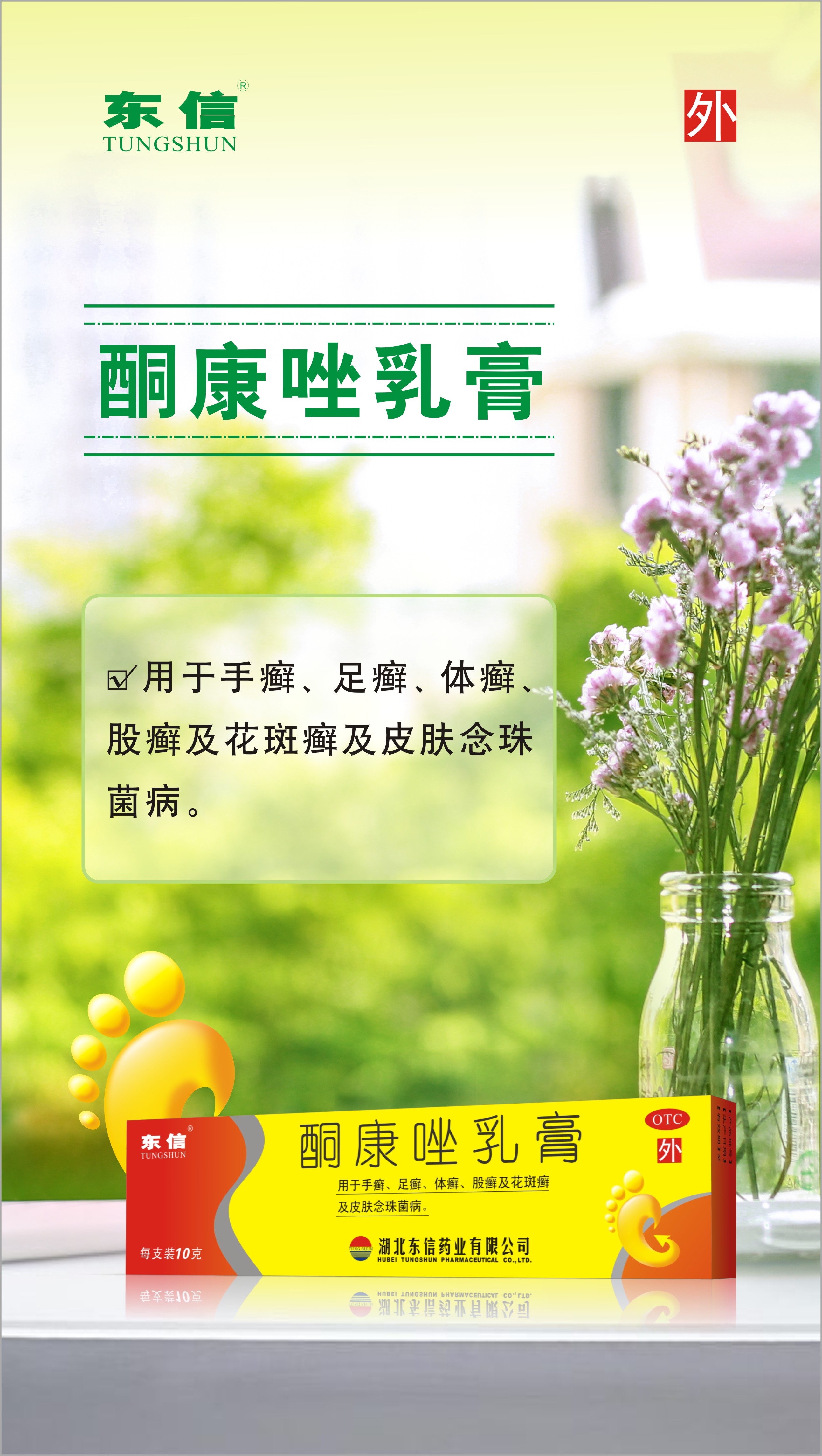 酮康唑乳膏,用于手癬、足癬、體癬、股癬、花斑癬以及皮膚念珠菌病。