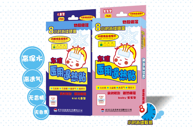 其相較于傳統(tǒng)的退熱方法具有使用方法簡單,可長時(shí)間使用,減少給次的劑量與次數(shù),同時(shí)由于退熱貼劑本身是一種外用藥,也就是除于物理降溫的一種,避免了“是藥三分毒”的威脅,特別是可減少傳統(tǒng)退燒藥對肝臟的損害。