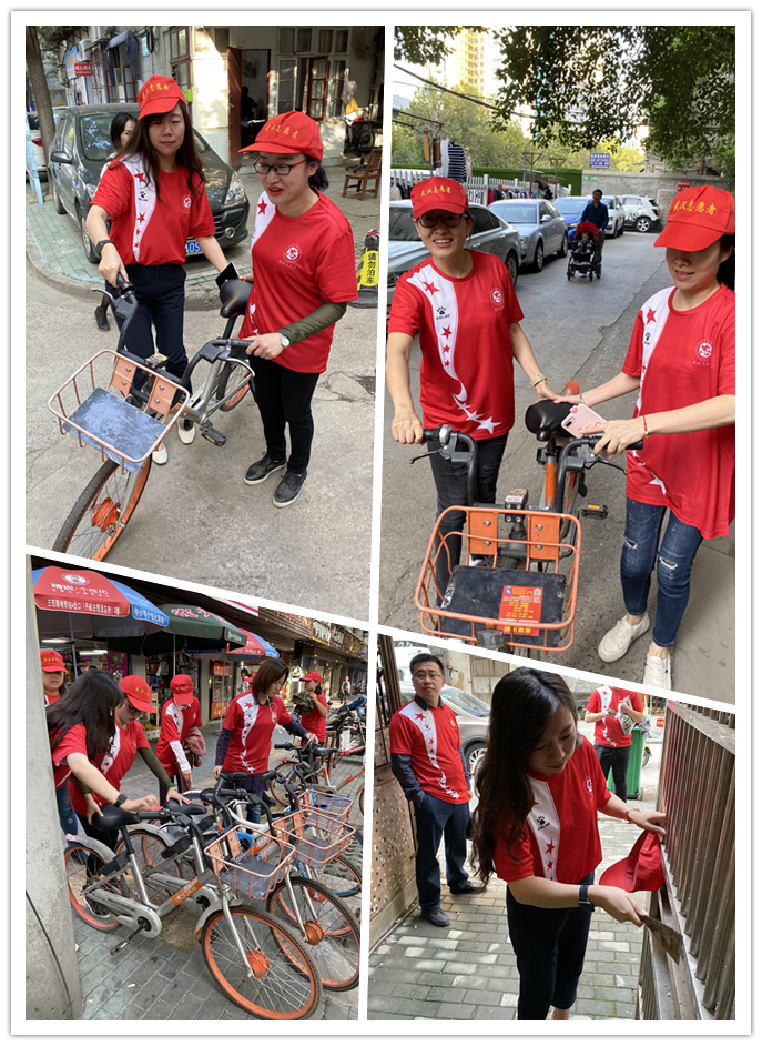 志愿者們在社區(qū)工作人員的帶領(lǐng)下,沿著中山大道、麟趾路、京漢大道規(guī)整共享單車,鏟除小廣告,清掃雨陽棚,街道和社區(qū)在他們的規(guī)整和打掃下煥然一新。