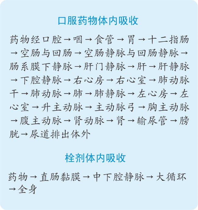 口服藥物與栓劑體內(nèi)吸收對(duì)比見(jiàn)下圖